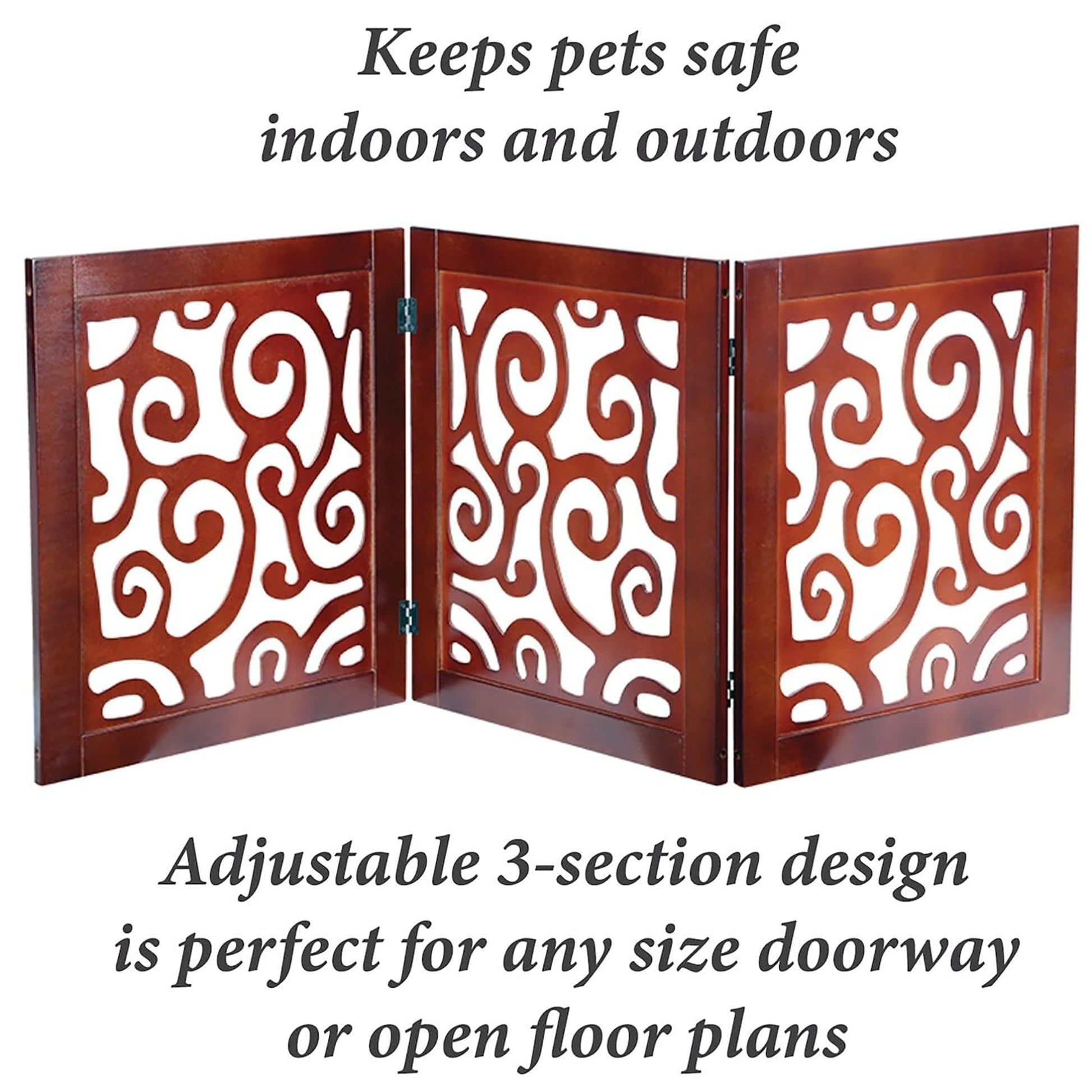 3-Section Adjustable and Scrolled Wooden Pet Gate by Etna